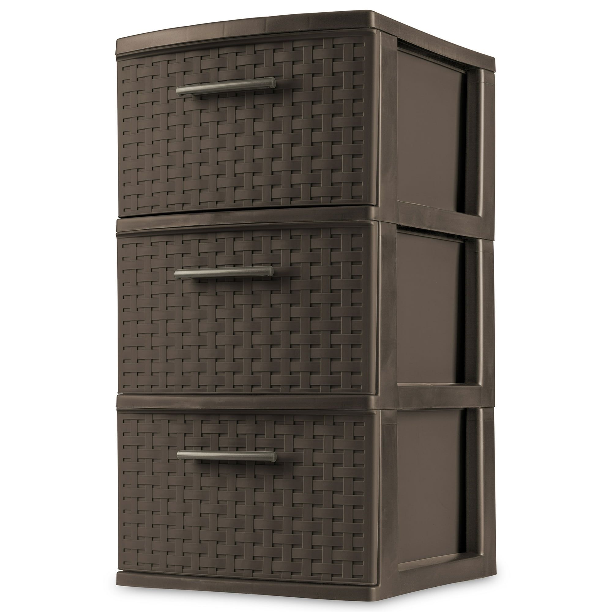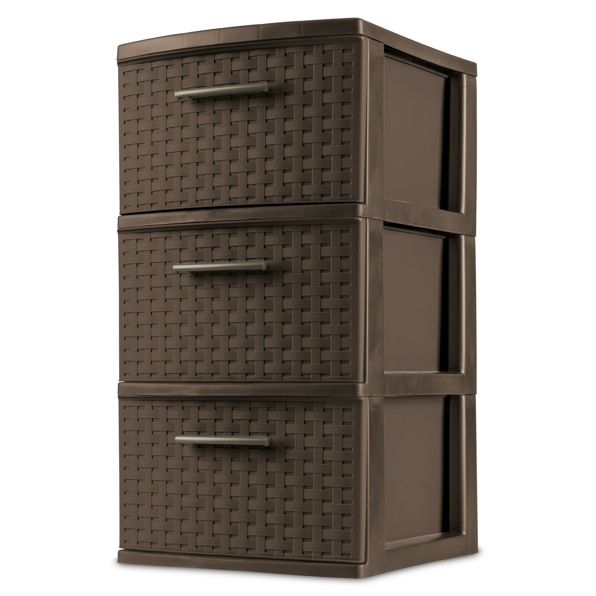 Home > 3 Drawer Weave Tower, Plastic Decor Drawers with Pull Handles, Brown