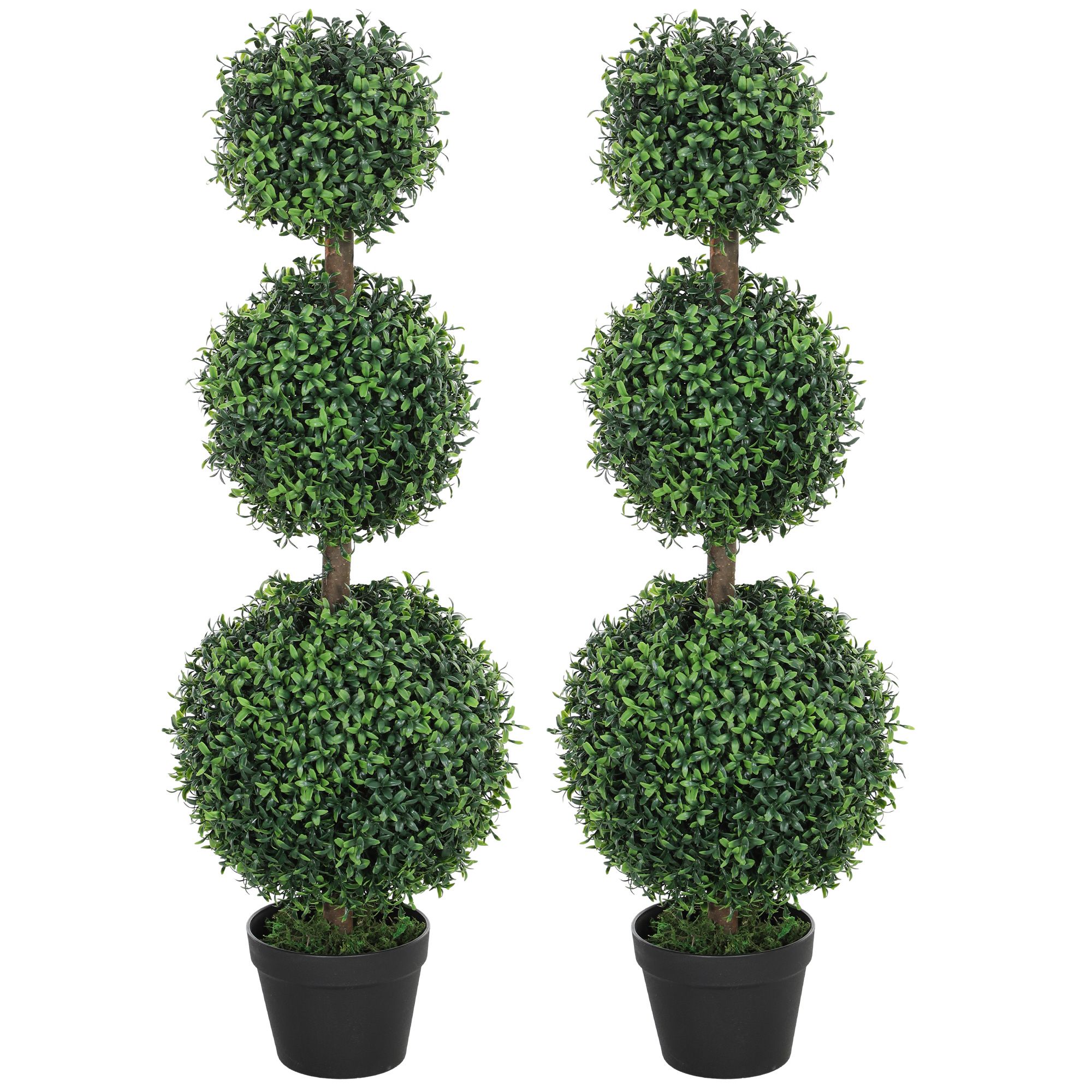 Transform your space with HOMCOM's two sets of topiary ball-shaped boxwood trees. These charming fake plants boast a natural texture for an ultra-realistic look, and they are good for indoor and outdoor settings thanks to their UV protection. Enjoy effortless beauty with these low-maintenance, stable faux plants, which enhance any room or outdoor garden decor.
