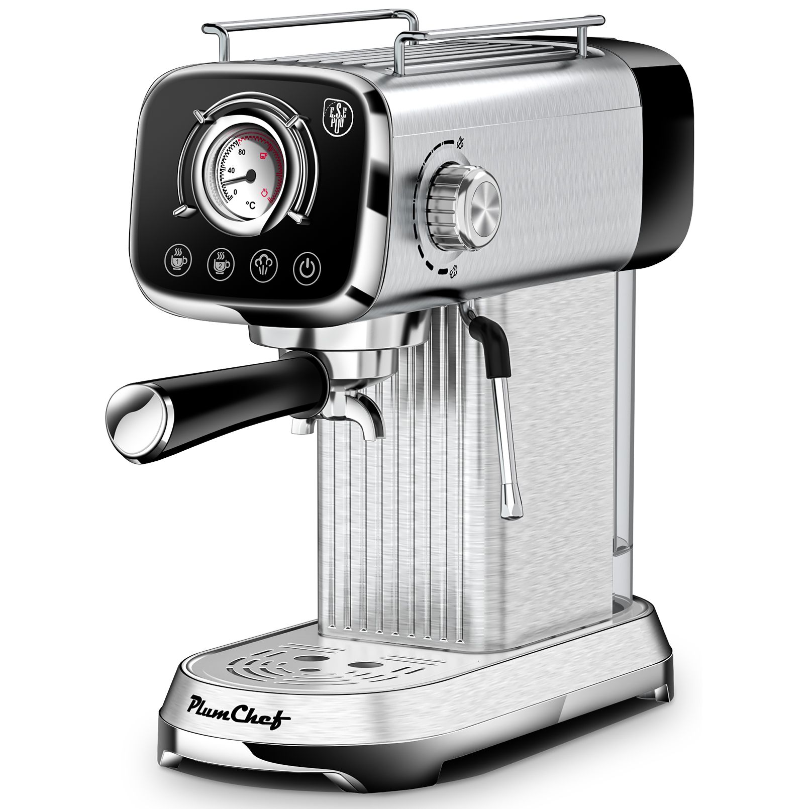 PlumChef Espresso Machine 20 Bar Professional Compact Household Coffee Espresso Maker with Milk Frother Steam Wand Temperature Gauge 34oz Water Tank L