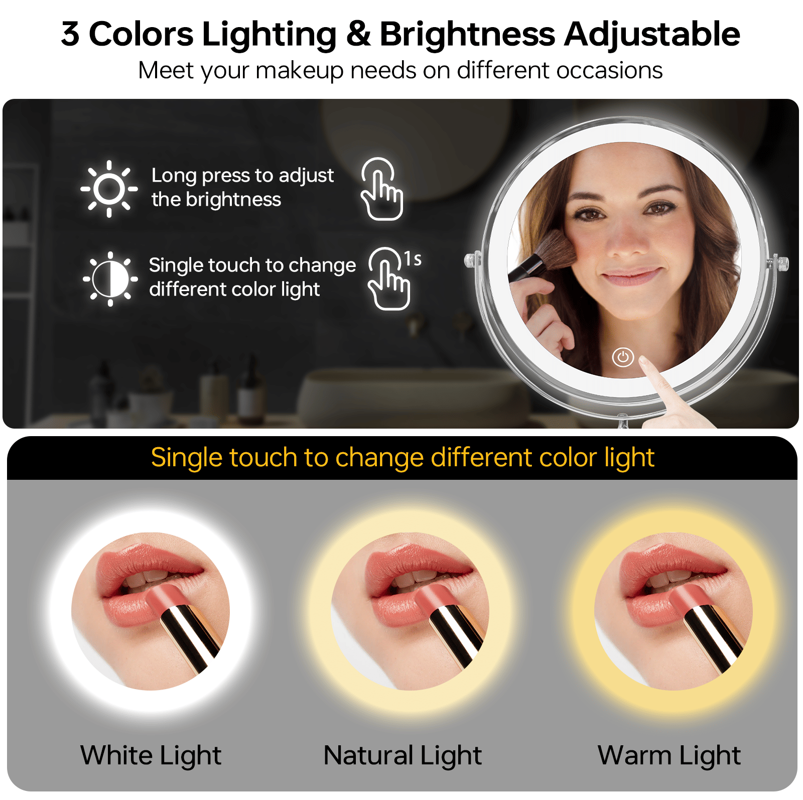 2.Rechargeable Vanity Mirror with Smart Touch Screen Switch